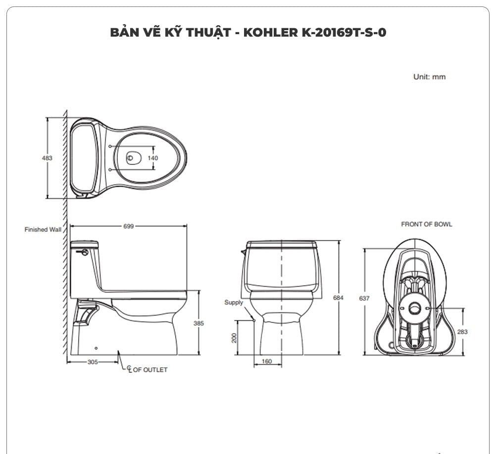 Thông số kỹ thuật của Kohler Santa Rosa K-20169T-S-0