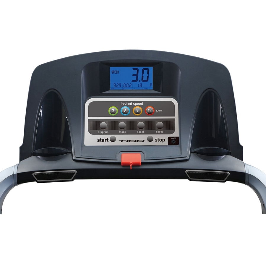 | MP3 VÀ LOA ĐÔI | Tương thích với máy nghe nhạc MP3 thông qua kết nối line-in, máy chạy bộ T100 mang đến cho bạn trải nghiệm thể thao thú vị nhất. Thay vì chỉ nghe nhạc, bạn có thể nói chuyện với điện thoại trong khi chạy. Âm thanh có sẵn thông qua loa tích hợp. |