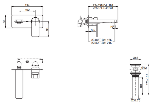Vòi chậu rửa gắn tường KOHLER PARALLEL K-22567T-B4-BRT