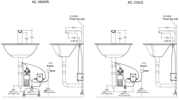 - Thiết kế hai trong một (nước & xà phòng) cung cấp trải nghiệm rửa tay hoàn toàn không chạm.